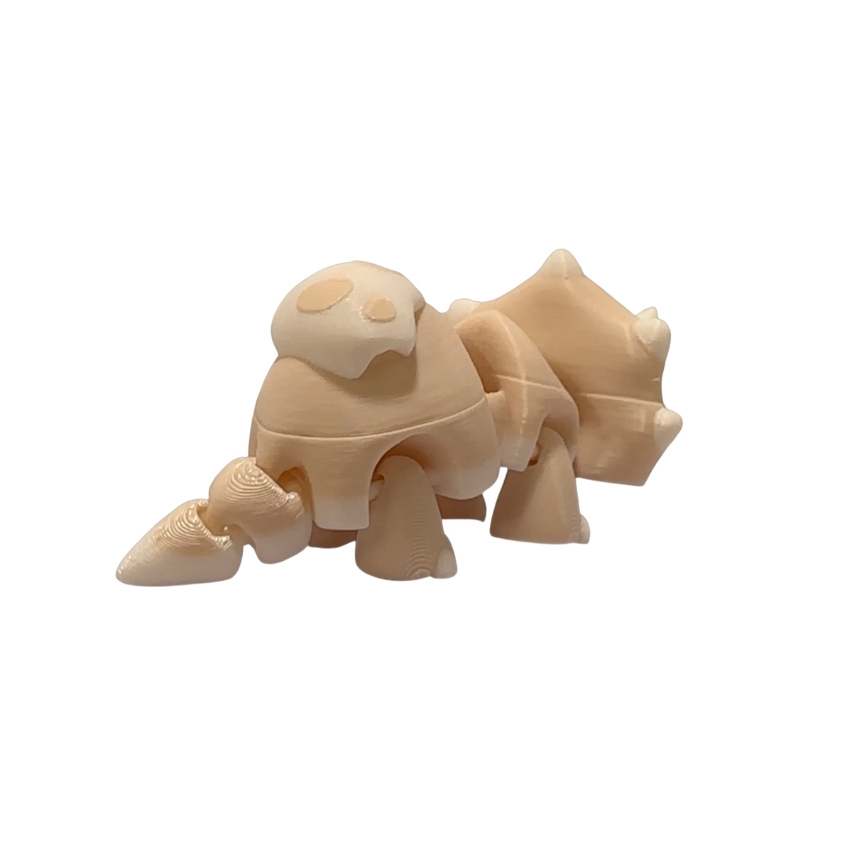 Add a playful prehistoric accent to your space with this articulated triceratops 3D print in a warm tan finish. Designed by 3DGOB and produced as a finished physical item, this flexi baby triceratops arrives fully assembled and ready to enjoy. It is a completed product, not an STL file or digital download.