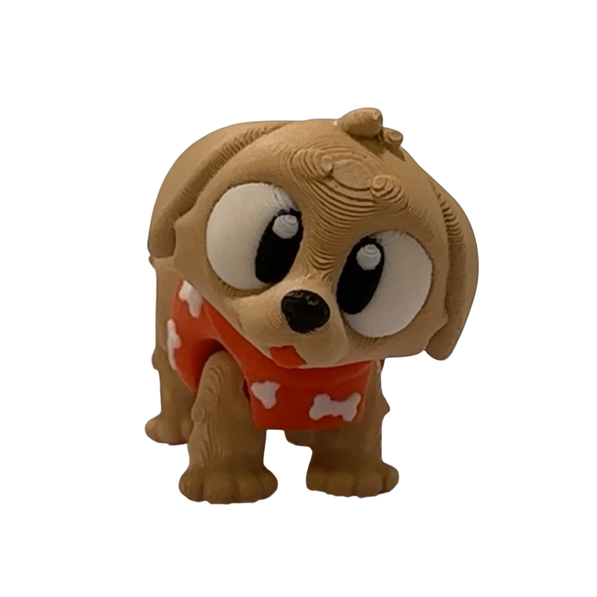 Each flexi golden retriever puppy is 3D printed with care, then cleaned and finished by hand for a polished, cohesive look. The subtle layer texture highlights its handmade character, while tuned joints help this articulated dog figurine stay flexible without losing its shape. Small variations from piece to piece make every figurine unique.